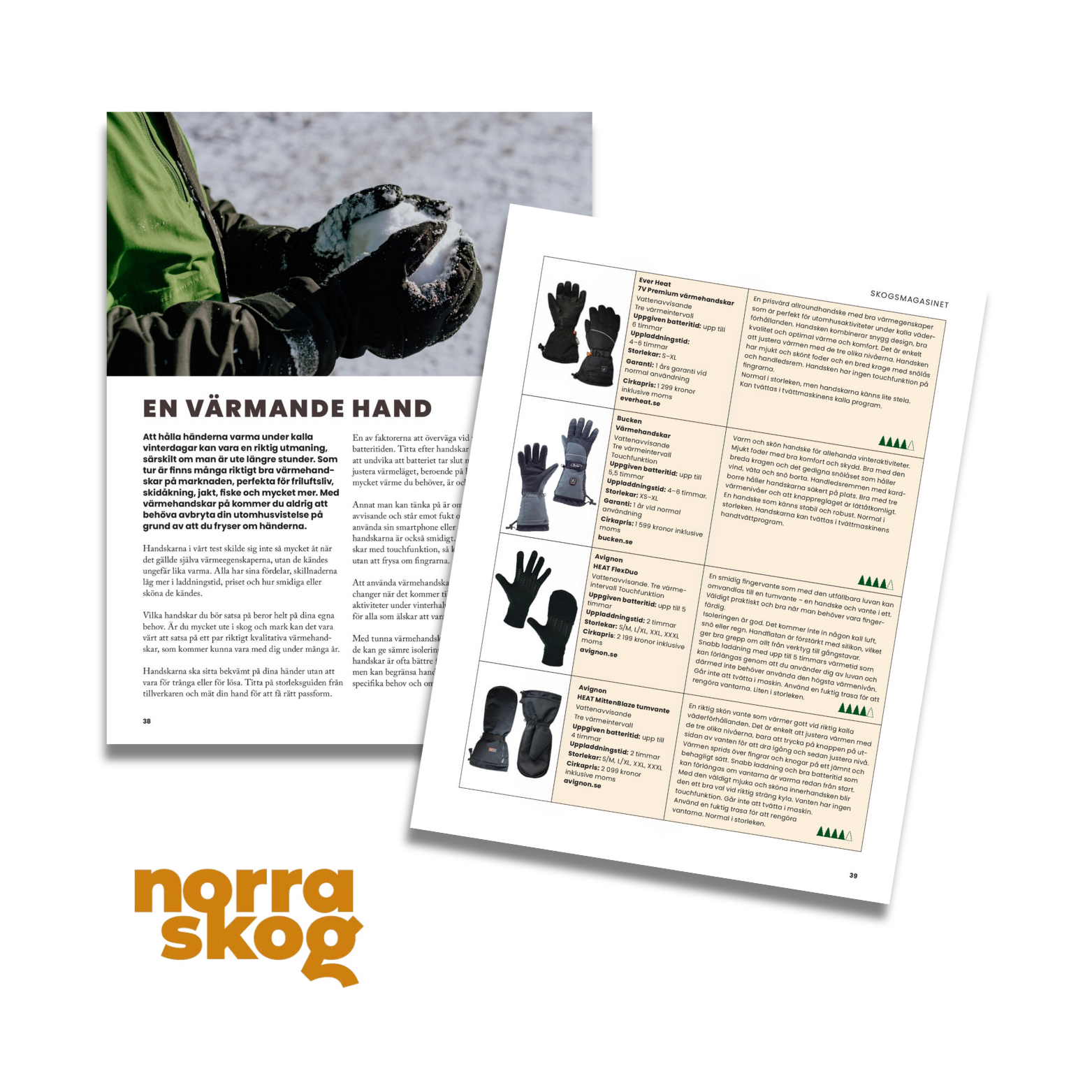 Skogsmagasinet har testat och recenserat våra värmehandskar i sitt senaste nummer. I artikeln lyfts funktion, värme och kvalitet – med fokus på hur våra produkter presterar i riktig vinterkyla.